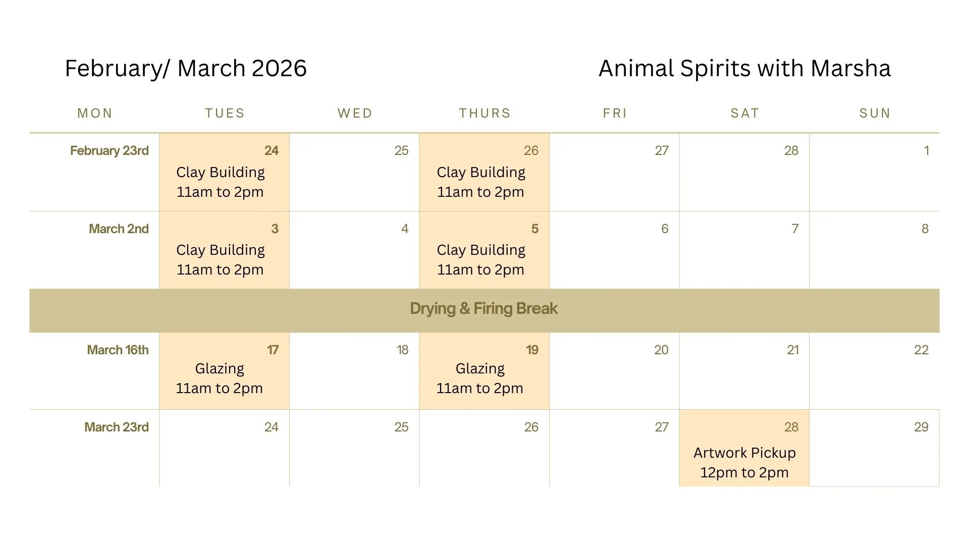 Session 4: Thursday, March 5th (11am to 2pm) Clay Building
